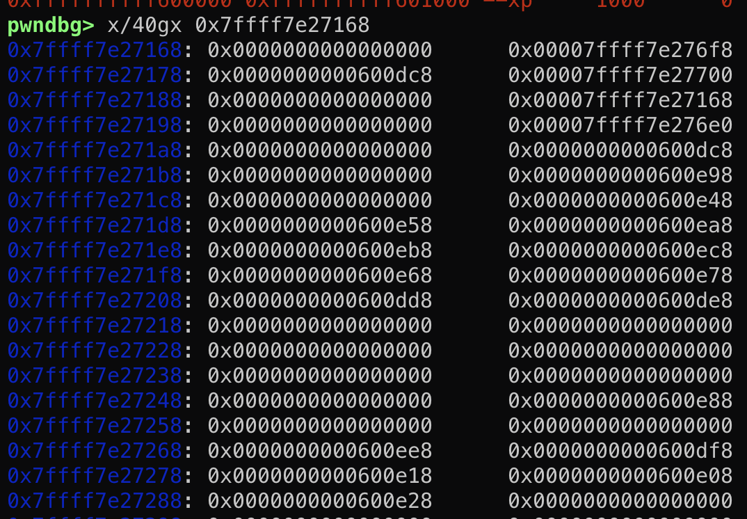 /* There is one of these for each thread, which contains the per-thread cache (hence "tcache_perthread_struct"). Keeping overall size low is mildly important. Note that COUNTS and ENTRIES are redundant (we could have just counted the linked list each time), this is for performance reasons. */ typedefstructtcache_perthread_struct { uint16_t counts[TCACHE_MAX_BINS];// 每个bin的chunk计数 tcache_entry *entries[TCACHE_MAX_BINS];// 每个bin的首个chunk } tcache_perthread_struct;